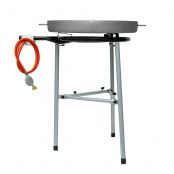 Das aus Rundrohr gefertigte Untergestell ist komplett zerlegbar und somit platzsparend zu verstauen. Die Standhöhe des Paella-Bräter-Set beträgt ca. 80 cm (mit Pfanne ca. 87 cm).